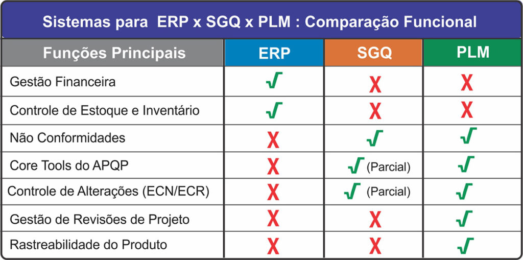 Neste caso sistemas de ERP e SGQ não são suficientes, pois na indústria automotiva necessitamos de um sistema que conecte as engenharias, qualidade e produção de forma estruturada e segundo critérios específicos do setor.